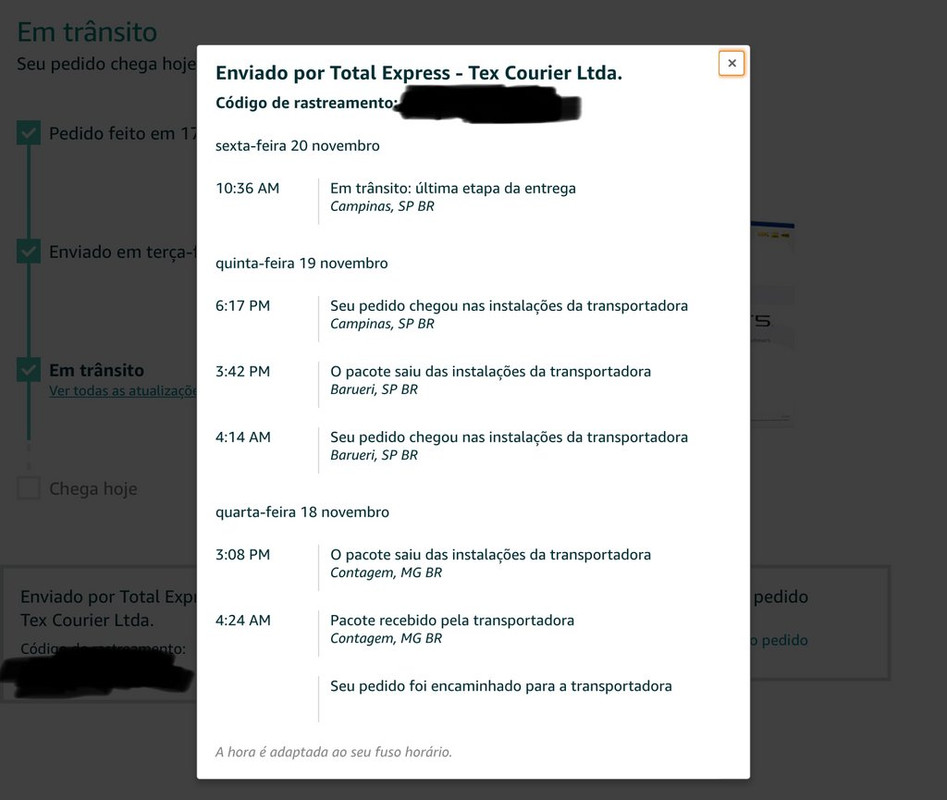 Moro em sampa, foi enviado dia 18, e chegou hoje de manhã.Veio de Direct Log?